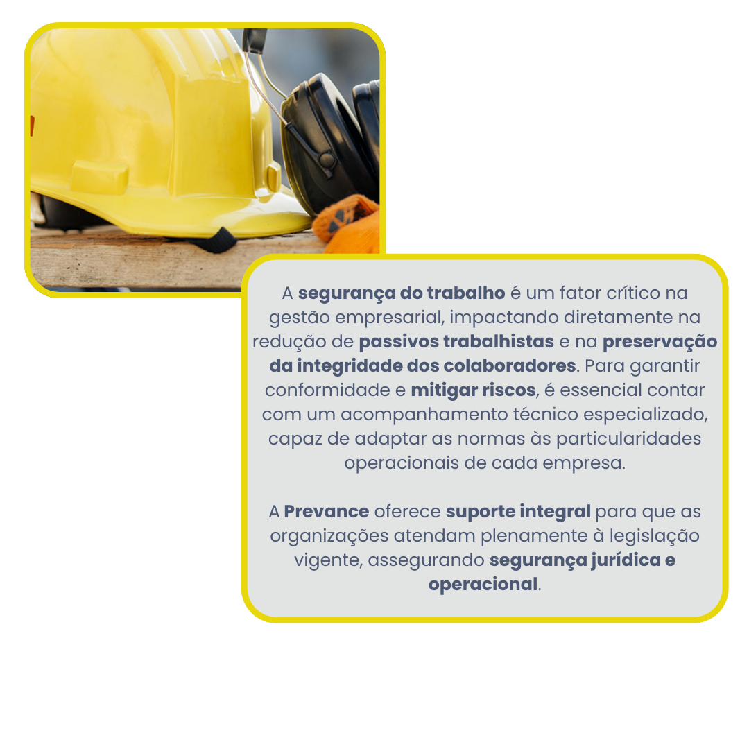 Orientação especializada em relação às melhores práticas de segurança do trabalho, conforme normativas vigentes.